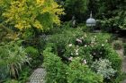 Romantisher, sehr kreativer Garten, in einer poetische Atmosphäre dank den Rosenstöcke, den zahlreichen mehrjährige Planzen und geschnittenen Buchsbäumen. Mehere bequeme Bänke empfangen Sie in dem kleine wilden Gemüsegarten. Besuch nach Vereinbarung.